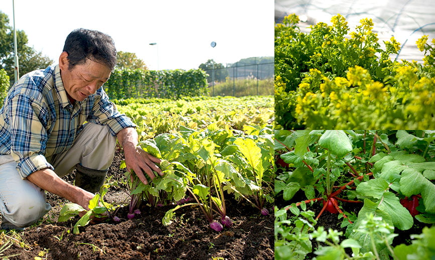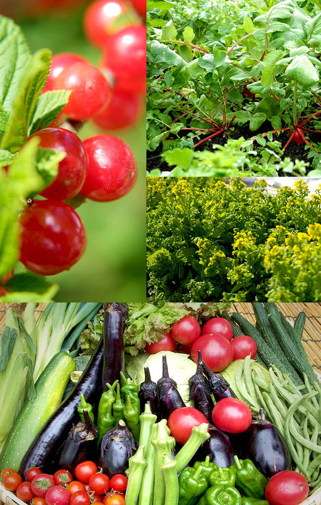 自慢の「自家農園」では、種まきからこだわった様々な野菜を育てています。